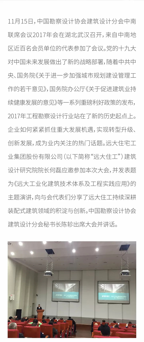 遠大住工建筑設計研究院院長何磊出席 中國勘察設計協會建筑設計分會中南聯席會議2017年會 并發表主題演講