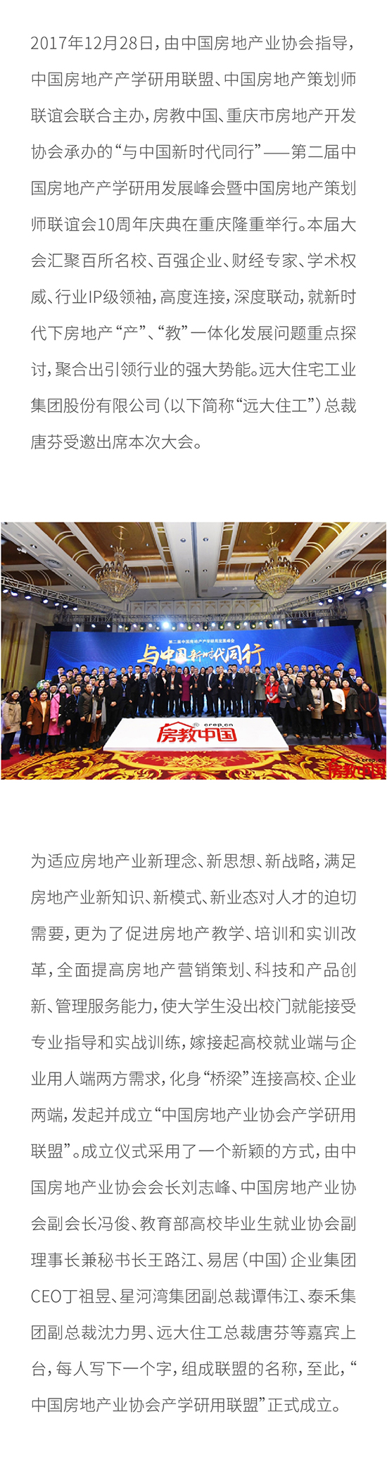 “與中國新時代同行” 總裁唐芬受邀出席第二屆中國房地產產學研用峰會