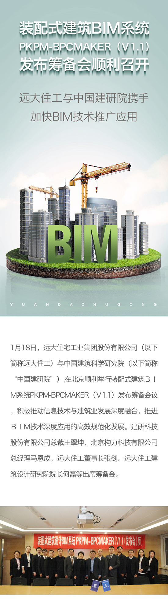 裝配式建筑BIM系統PKPM-BPCMAKER(V1.1)發布籌備會順利召開 遠大住工與中國建研院攜手加快BIM技術推廣應用
