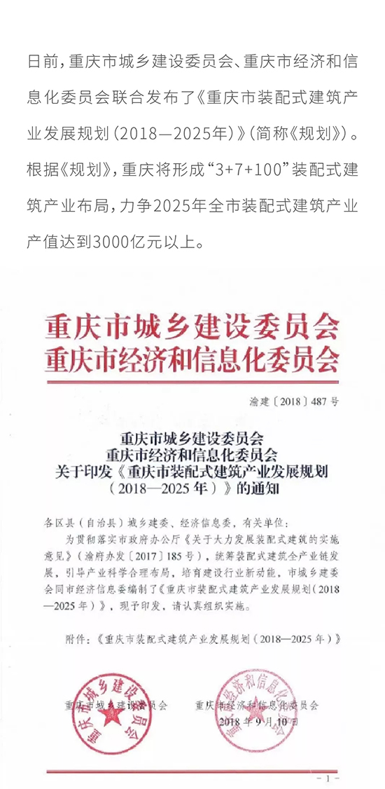 最新|重慶市出臺裝配式建筑產業(yè)發(fā)展規(guī)劃(2018—2025年),力爭2025年裝配式建筑產業(yè)產值達到3000億元以上
