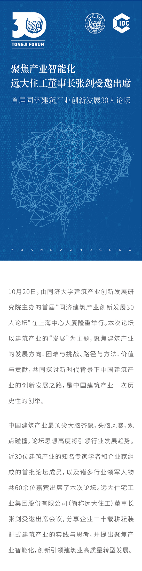 聚焦產業智能化 遠大住工董事長張劍受邀出席 首屆同濟建筑產業創新發展30人論壇