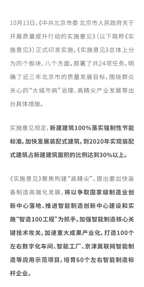 北京開展質量提升行動 到2020年實現裝配式建筑占新建建筑面積的比例達到30%以上