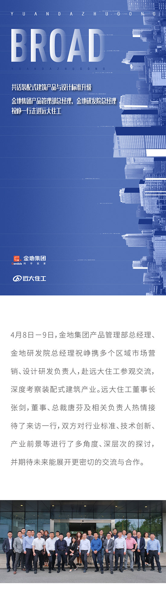 共話裝配式建筑產品與設計標準升級 金地集團產品管理部總經理、金地研發院總經理祝崢一行走進遠大住工