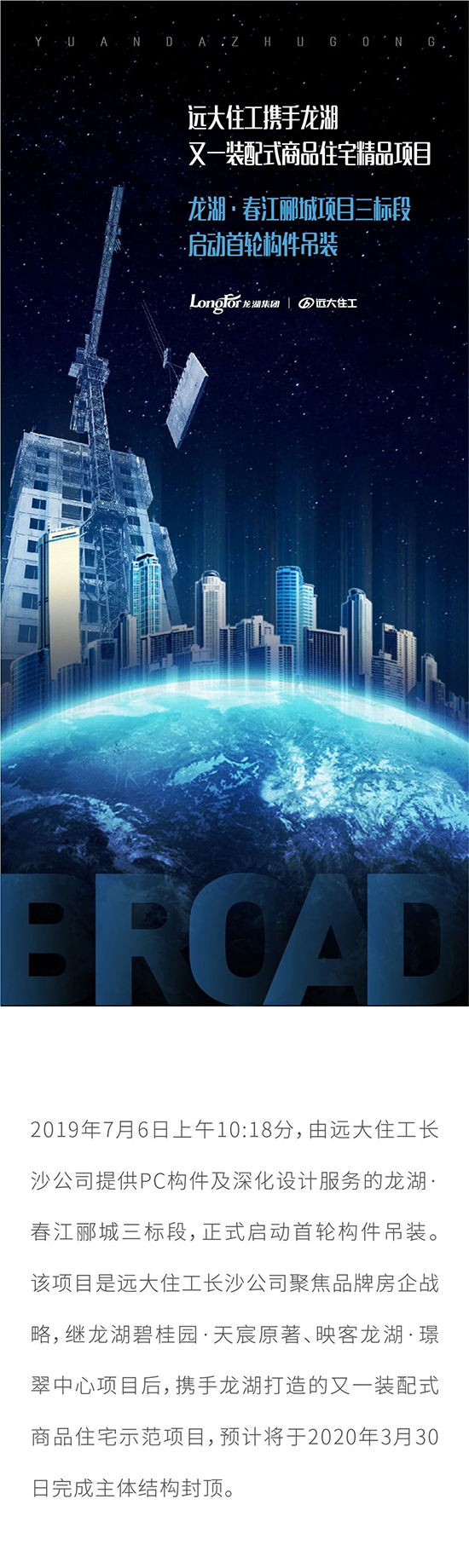 遠(yuǎn)大住工攜手龍湖又一裝配式商品住宅精品項(xiàng)目 龍湖·春江酈城項(xiàng)目三標(biāo)段啟動首輪構(gòu)件吊裝