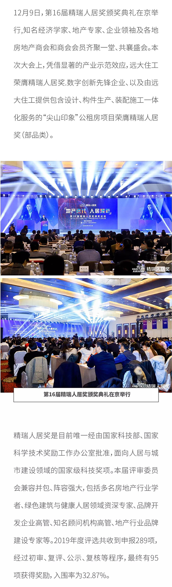 第16屆精瑞人居獎頒獎典禮在京舉行 遠大住工榮膺兩項大獎
