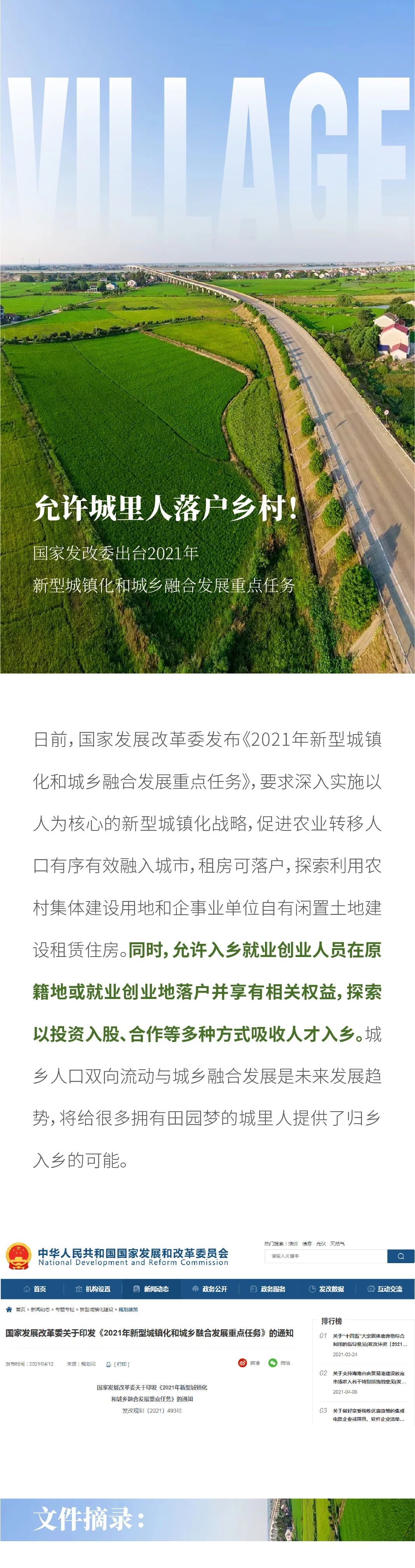 允許城里人落戶(hù)鄉(xiāng)村!國(guó)家發(fā)改委出臺(tái)2021年新型城鎮(zhèn)化和城鄉(xiāng)融合發(fā)展重點(diǎn)任務(wù)