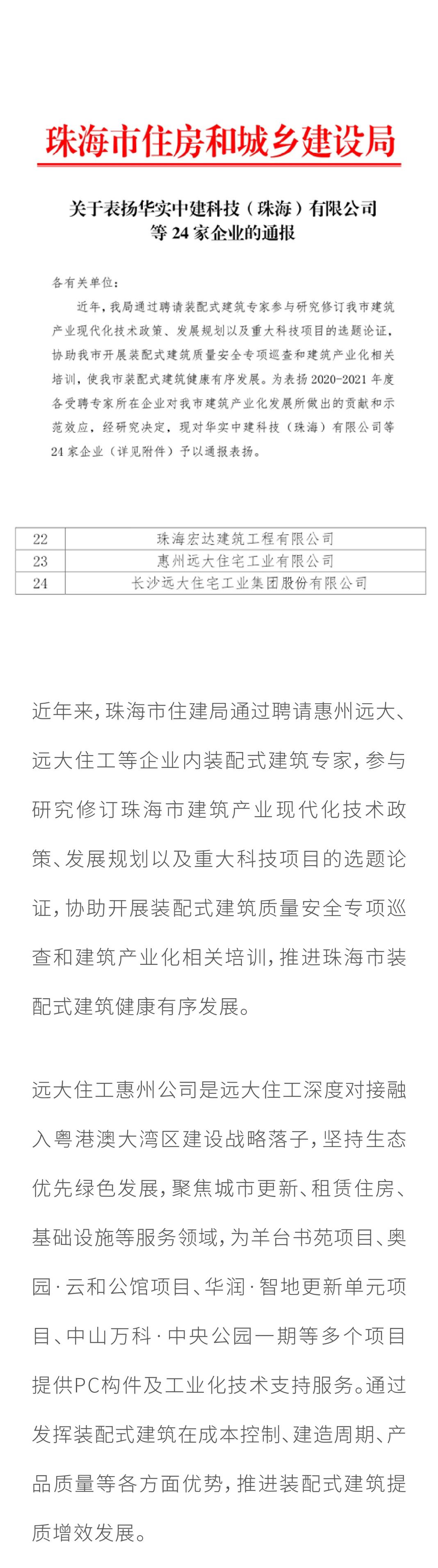點(diǎn)贊!惠州遠(yuǎn)大、遠(yuǎn)大住工獲珠海市住建局通報(bào)表揚(yáng)