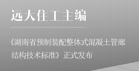 近日,由遠大住工與湖南大學主編的湖南省工程建設推薦性地方標準《湖南省預制裝配整體式混凝土綜合管廊結構技術標準》,由湖南省住房和城鄉建設廳批準發布,編號為DBJ43/T 329—2017。自2018年3月1日起在全省范圍內實施。